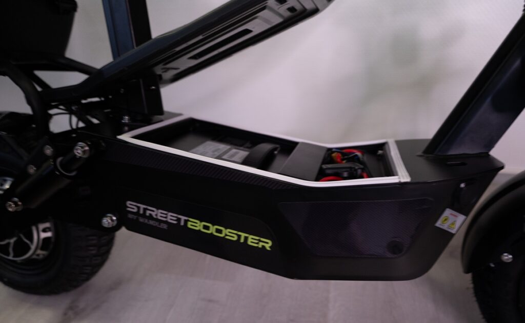 Der Streetbooster Allrad ist der erste E-Scooter mit echtem Allradantrieb, Sitz und Straßenzulassung in Deutschland. Ausgestattet mit zwei 500-Watt-Motoren (vorne und hinten) mit einer Peakleistung bis 3000 W bietet er kraftvolle Traktion, besonders bei Steigungen. Seine 3-fach Federung in Kombination mit den größeren Luftreifen machen ihn komfortabel und sicher auch jedem Untergrund und in Kurven. Der entnehmbare Wechselakku mit 26-Ah oder 35-Ah ermöglicht Reichweiten von 80 bis 100 km (je nach Fahrergewicht und Streckenprofil). Der abnehmbare Sitz, das Farbdisplay, Blinker, Topcase und die Scheibenbremsen runden das Premium Paket ab. Mit einer vergleichsweise höheren Tragkraft von 140 kg ist er sehr stabil gebaut und spurstark. Einziger Nachteil, er wiegt mit 55 kg mehr als herkömmliche E-Scooter. Aber dafür ist er auch faltbar und klein zu verstauen. Der Streetbooster Allrad richtet sich vor allem an Pendler und Tourenfahrer, die Wert auf Komfort, Leistung und Sicherheit legen.