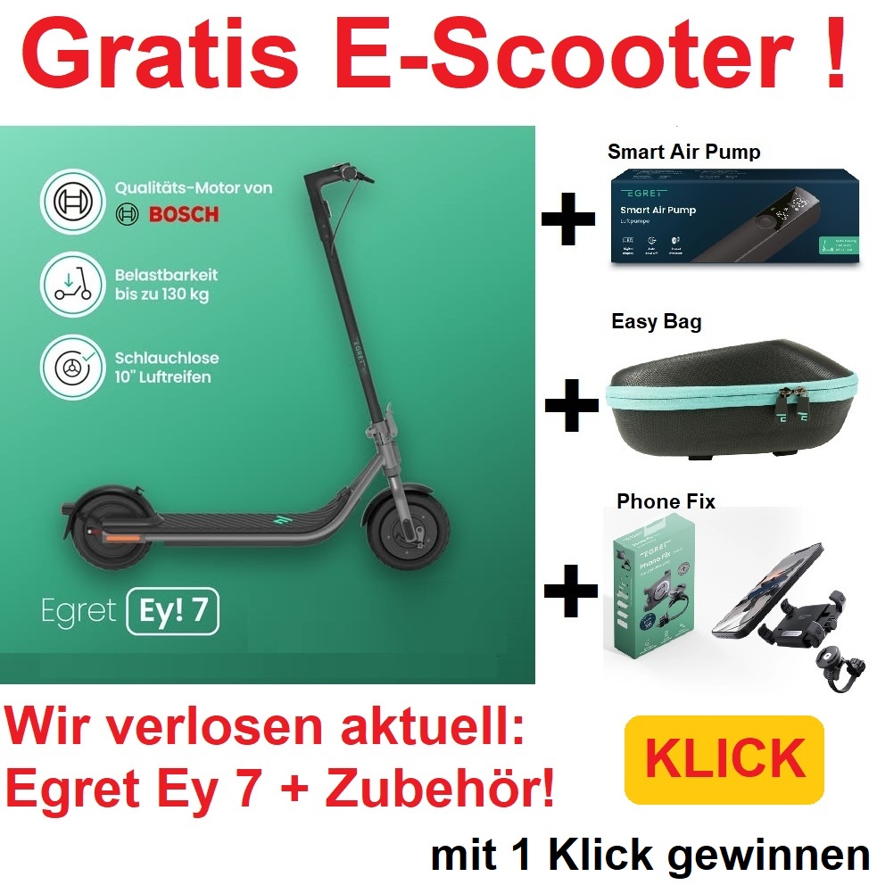 • Du nimmst automatisch an der Auslosung des eScooter Egret X Prime im Wert von 999,- € am 31.12.2025 teil